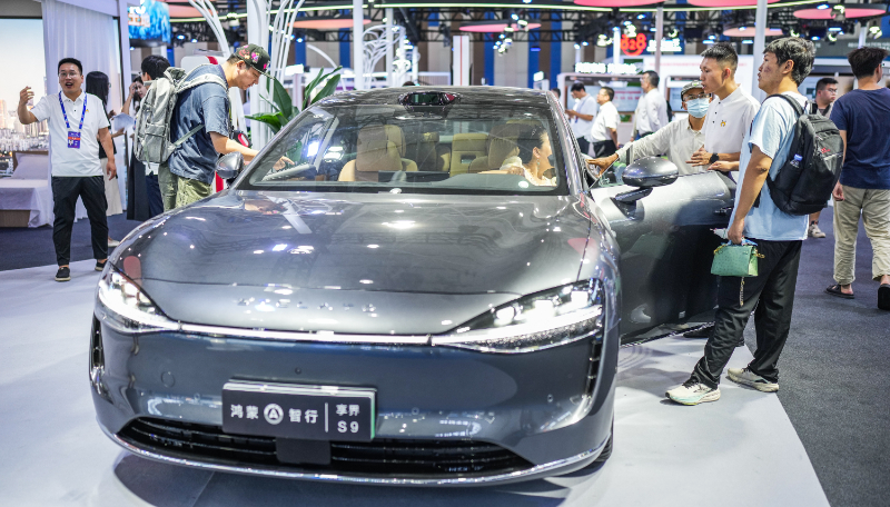 2024年8月28日,觀展者在2024中國(guó)國(guó)際大數(shù)據(jù)產(chǎn)業(yè)博覽會(huì)會(huì)場(chǎng)參觀智能駕駛汽車。 新華社記者 陶亮 攝