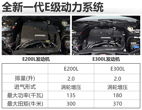 動(dòng)力方面,新車(chē)將搭載兩款不同調(diào)校的2.0T渦輪增壓發(fā)動(dòng)機(jī),其中E200L是沿用現(xiàn)款車(chē)型上的2.0T發(fā)動(dòng)機(jī),最大功率135千瓦,最大扭計(jì)300牛米;E300L發(fā)動(dòng)機(jī)則擁有更強(qiáng)的動(dòng)力,最大功率180千瓦,最大扭矩達(dá)到370牛米。