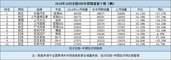 2018年SUV市場的快速冷卻,主要來自于自主品牌的滑落,而至年底,自主品牌也開始拼力自救。10月,自主SUV表現(xiàn)持續(xù)回暖,并共有六款車型入榜SUV銷量前十,但相比去年,表現(xiàn)仍不盡如人意。其中,哈弗H6再現(xiàn)“王者之風(fēng)”,其10月銷量突破4萬輛,再上一個臺階;接下來,榮威RX5表現(xiàn)非常突出,是榜單中環(huán)比增速最快的車型,排名也上升至歷史新高;此外,在沉淪多月后,長安旗下終于再次有車入榜。