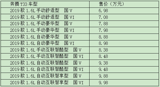 8月3日,一汽奔騰全新物聯(lián)網(wǎng)汽車T33正式上市。一汽轎車股份有限公司總經(jīng)理柳長慶公布了奔騰T33的官方指導(dǎo)價(jià)。奔騰T33共計(jì)推出12款車型,售價(jià)區(qū)間為6.98-9.98萬元。
