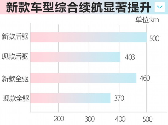 MARVEL X是榮威在2018年推出的一款A+級純電動SUV,在售車型包括兩電機后驅(qū)、三電機全驅(qū)兩款車型,綜合續(xù)航里程分別為403km、370km。日前,網(wǎng)上車市獲得了新款MARVEL X的相關(guān)消息,新車針對續(xù)航進行了大幅提升,兩電機后驅(qū)、三電機全驅(qū)兩款車綜合續(xù)航分別可達500km、460km。
