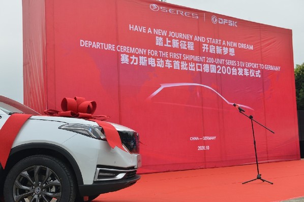 10月8日,“賽力斯電動車首批出口德國200臺發(fā)車儀式”在重慶國際物流樞紐園區(qū)舉行。小康集團(tuán)旗下賽力斯品牌智能電動汽車——賽力斯3將通過海運于一個月后抵達(dá)德國市場。