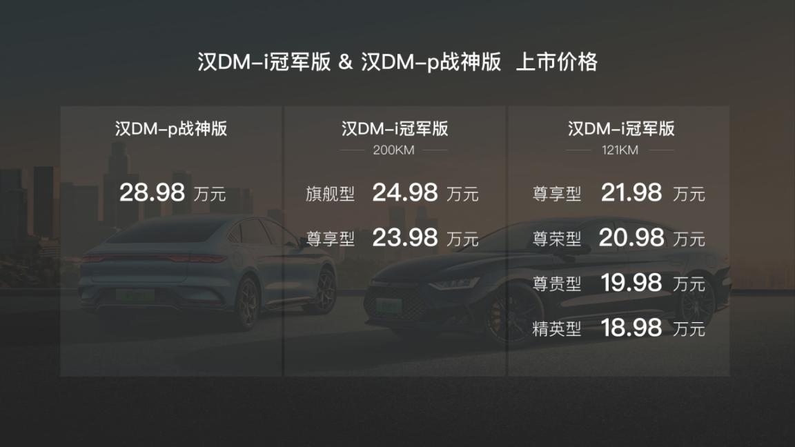 漢DM-i冠軍版、漢DM-p戰(zhàn)神版上市,售價18.98~28.98萬元