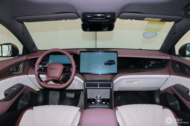 來到內(nèi)飾,海豹DM-i采用環(huán)抱式的座艙,而在設(shè)計(jì)上,海豹DM-i也同樣汲取大量海洋靈感,包括儀表臺、車門把手以及座椅縫線均有所體現(xiàn),此外,海豹DM-i采用了嵌入式全液晶儀表盤和懸浮式中控屏幕,更顯科技感。