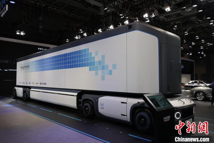 11月5日,第四屆中國(guó)國(guó)際進(jìn)口博覽會(huì)在國(guó)家會(huì)展中心(上海)舉行。汽車展區(qū)吸引眾多企業(yè)前來參展。圖為現(xiàn)代汽車展區(qū)展示新能源技術(shù)產(chǎn)品——?dú)鋭?dòng)智能無人運(yùn)輸車。中新社記者 楊可佳 攝