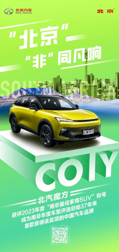 北汽魔方(BAIC BEIJING X55)獲評(píng)2023年度“南非最佳家用SUV”稱(chēng)號(hào)