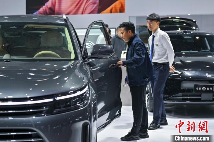 圖為展出的國產(chǎn)新能源汽車吸引民眾了解。中新網(wǎng)記者 駱云飛 攝