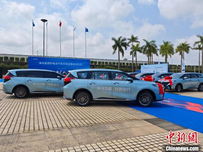 3月30日,海馬氫燃料電池示范運營啟動儀式在??谂e行,首批25臺氫燃料電池汽車投入市場運營,標志著海南自貿(mào)港零碳排放汽車生態(tài)體示范項目基本建成。中新社記者 王子謙 攝