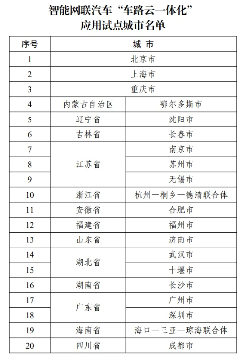 這20個城市(聯(lián)合體)榜上有名!智能網(wǎng)聯(lián)汽車“車路云一體化”應(yīng)用試點城市名單公布
