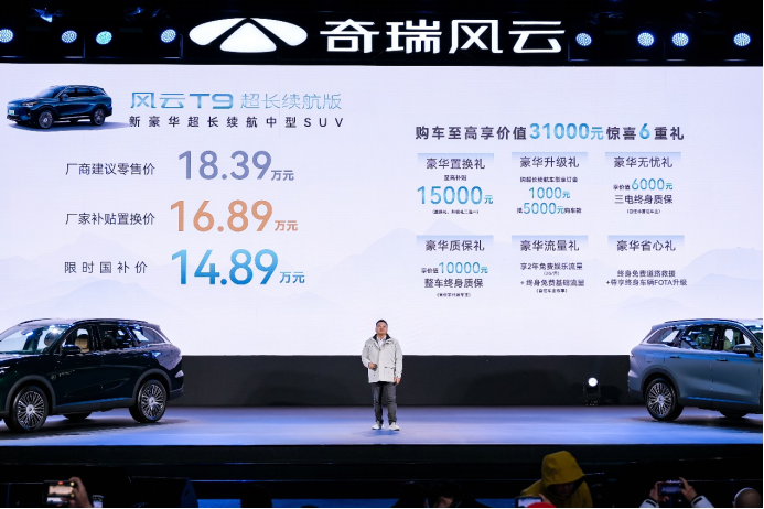 央廣網(wǎng)北京11月19日消息(記者姜鵬)11月18日,奇瑞風(fēng)云T9超長續(xù)航版于天津泰達(dá)航母主題公園上市,官方指導(dǎo)價(jià)18.39萬元,并帶來至高享價(jià)值31000元的驚喜6重禮,廠家補(bǔ)貼置換價(jià)為16.89萬元,限時(shí)國補(bǔ)價(jià)14.89萬元。