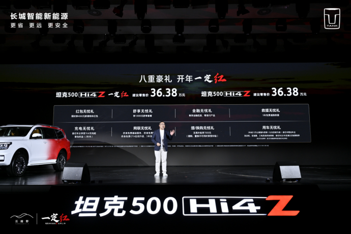 央廣網(wǎng)北京1月2日消息(記者 姜鵬)2025年1月1日,坦克500 Hi4-Z在保定·長城汽車技術(shù)中心上市,售價(jià)36.38萬元,坦克500 Hi4-Z一定紅同步發(fā)售。
