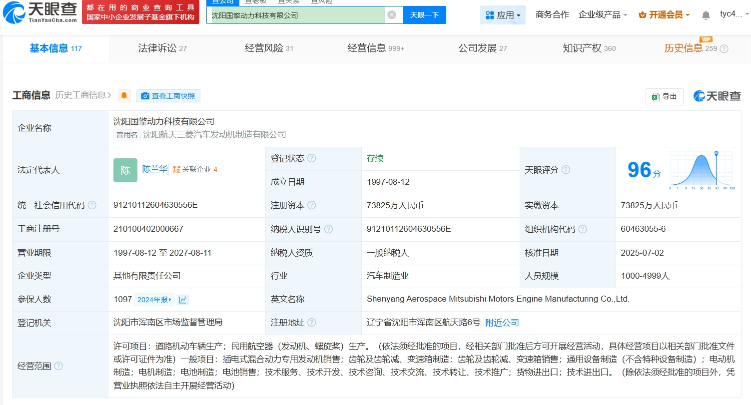 天眼查顯示,航天三菱已于今年7月2日更名為“沈陽國擎動(dòng)力科技有限公司”,同時(shí)三菱商事株式會(huì)社、三菱自動(dòng)車工業(yè)株式會(huì)社、馬中投資控股有限公司均退出投資人之列,股東變更后的名單中出現(xiàn)北京賽苜科技有限公司。