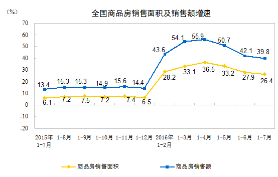 7月末,商品房待售面積71382萬平方米,比6月末減少34萬平方米。其中,住宅待售面積減少415萬平方米,辦公樓待售面積增加26萬平方米,商業(yè)營業(yè)用房待售面積增加196萬平方米。