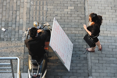 2013年10月14日,一位市民在看房產(chǎn)中介放置于上海自由貿(mào)易試驗(yàn)區(qū)二號(hào)門(mén)附近的房源信息。圖/視覺(jué)中國(guó)