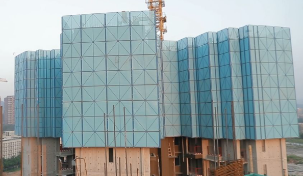 而在外墻施工上,則采用了先進的自升式外爬架技術(shù),爬架采用全封閉維護結(jié)構(gòu),讓工人施工更加安全,也不用再另外搭建腳手架,減少建筑垃圾產(chǎn)生。