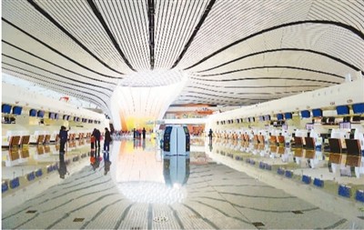 作為一個國際化的大型機(jī)場,北京大興國際機(jī)場在多項(xiàng)環(huán)保節(jié)能技術(shù)上都處于世界領(lǐng)先水平。胡慶明攝(人民圖片)