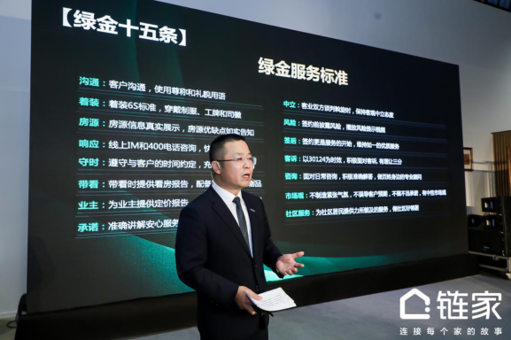 “接下來(lái),我們會(huì)對(duì)這綠金服務(wù)標(biāo)準(zhǔn)進(jìn)行拆解和細(xì)化,讓經(jīng)紀(jì)人在日常作業(yè)中遵循并真正做到。我們也會(huì)通過(guò)神秘客抽查等方式,確保這些服務(wù)標(biāo)準(zhǔn)能夠真正落地,讓鏈家的服務(wù)盡可能的標(biāo)準(zhǔn)化,減少經(jīng)紀(jì)人與經(jīng)紀(jì)人之間,城市與城市之間的服務(wù)方差?!辨溂褻OO王擁群表示。
