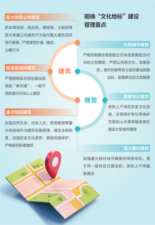 “文化地標”是一座城市“精氣神”的集中體現(xiàn),富有歷史文化底蘊的建筑、雕塑等,在營造公共環(huán)境、提升文化品位、塑造城市風(fēng)貌等方面發(fā)揮著重要作用。但有些地方建設(shè)的地標,忽視本地實際、割裂歷史文脈,不僅違背了城市發(fā)展規(guī)律,也破壞了生態(tài)環(huán)境和歷史文化風(fēng)貌。