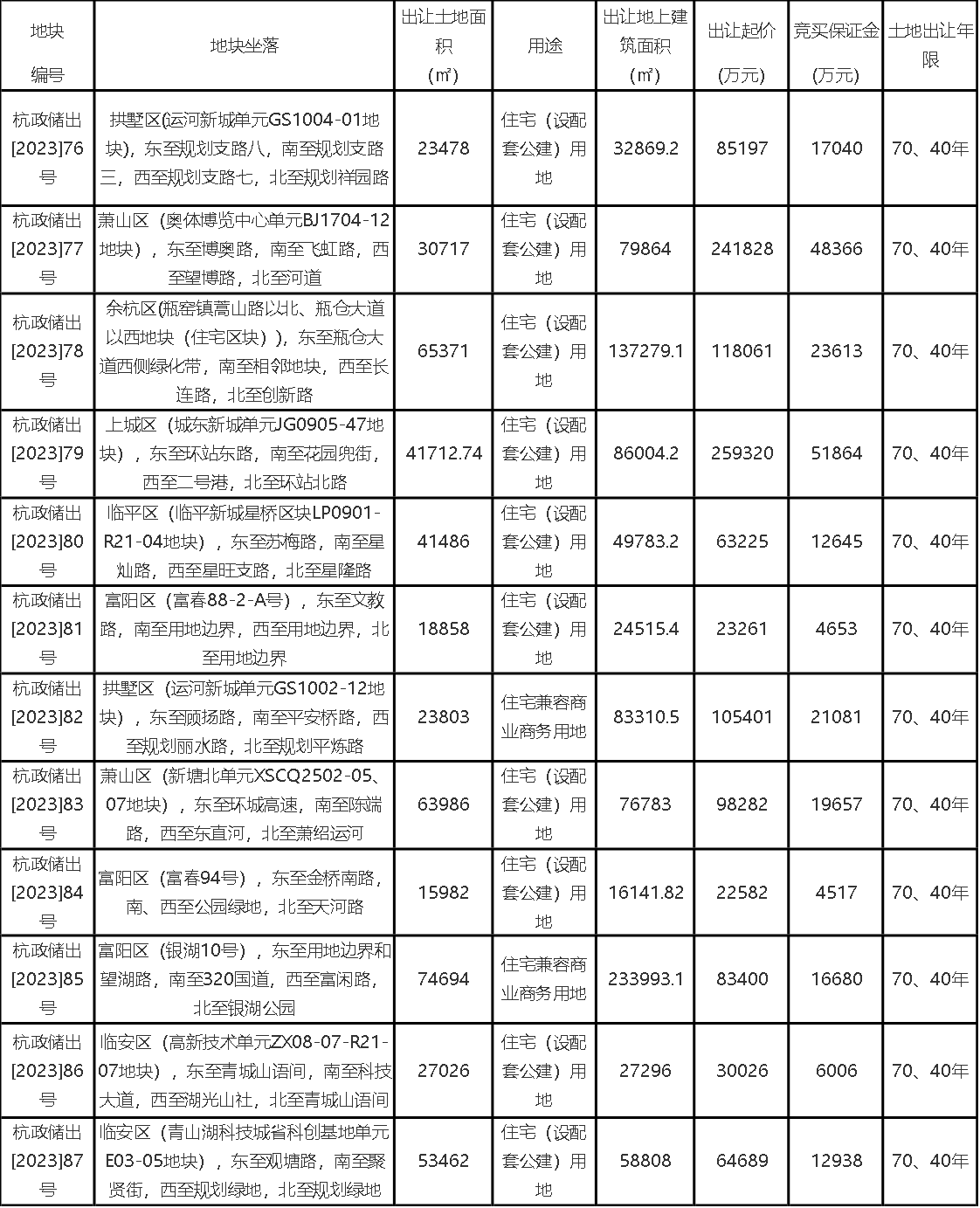杭州119.5億元掛牌12宗宅地,計劃于6月30日出讓