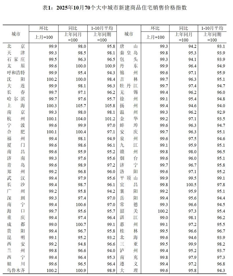 圖/國(guó)家統(tǒng)計(jì)局官網(wǎng)截圖 中原地產(chǎn)首席分析師張大偉分析稱:“以上海為例,其新房?jī)r(jià)格連續(xù)多月保持上漲,核心原因在于供給結(jié)構(gòu)的優(yōu)化:開發(fā)商聚焦核心區(qū)域優(yōu)質(zhì)地塊,推出高端改善型產(chǎn)品,契合了市場(chǎng)真實(shí)需求。這種‘核心區(qū)供給主導(dǎo)’的模式,使得上海新房市場(chǎng)在整體下行周期中保持獨(dú)立行情?!?/p> 同時(shí),改善型需求依然是驅(qū)動(dòng)市場(chǎng)成交的主力。58安居客研究院院長(zhǎng)張波指出:“一線城市改善需求依然穩(wěn)定:從統(tǒng)計(jì)局?jǐn)?shù)據(jù)來看,90-144平方米新建商品住宅價(jià)格環(huán)比穩(wěn)定性最優(yōu),結(jié)合58安居客研究院監(jiān)測(cè),線上90-120平方米戶型找房占比29%、120-140平方米占比21.1% ,可以看出改善型需求成為成交核心支撐。” 一二線城市二手房房?jī)r(jià)降幅環(huán)比收窄 從二手房房?jī)r(jià)來看,一二線城市中二手房?jī)r(jià)環(huán)比降幅收窄,同比降幅仍在擴(kuò)大。 國(guó)家統(tǒng)計(jì)局?jǐn)?shù)據(jù)顯示,10月份,一線城市二手住宅銷售價(jià)格環(huán)比下降0.9%,降幅比上月收窄0.1個(gè)百分點(diǎn)。其中,北京、上海、廣州和深圳分別下降1.1%、0.9%、0.9%和0.9%。二線城市二手住宅銷售價(jià)格環(huán)比下降0.6%,降幅收窄0.1個(gè)百分點(diǎn)。三線城市二手住宅銷售價(jià)格環(huán)比下降0.7%,降幅擴(kuò)大0.1個(gè)百分點(diǎn)。 從同比來看,10月份,一線城市二手住宅銷售價(jià)格同比下降4.4%,降幅比上月擴(kuò)大1.2個(gè)百分點(diǎn)。其中,北京、上海、廣州和深圳分別下降4.7%、3.4%、6.4%和3.3%。二線城市二手住宅銷售價(jià)格同比下降5.2%,降幅擴(kuò)大0.2個(gè)百分點(diǎn)。三線城市二手住宅銷售價(jià)格同比下降5.7%,降幅與上月相同。 “二手房房?jī)r(jià)表現(xiàn)得更為分化?!睆埓髠ブ赋觯骸耙痪€城市二手住宅價(jià)格環(huán)比下降 0.9%,結(jié)束了此前連續(xù)擴(kuò)大的態(tài)勢(shì),北京、上海、廣州、深圳四大城市降幅趨于一致,反映核心城市二手房市場(chǎng)恐慌性拋售情緒有所緩解。二線城市二手房降幅同步收窄0.1個(gè)百分點(diǎn)至0.6%,市場(chǎng)筑底跡象初現(xiàn)。但三線城市二手房降幅擴(kuò)大0.1個(gè)百分點(diǎn)至0.7%,與新房市場(chǎng)形成共振下跌,凸顯中小城市房地產(chǎn)市場(chǎng)的調(diào)整壓力?!?/p> 從供需關(guān)系看,二手房掛牌量在10月仍然呈現(xiàn)攀升態(tài)勢(shì)。根據(jù)麟評(píng)居住大數(shù)據(jù)研究院監(jiān)測(cè)數(shù)據(jù),10月14個(gè)重點(diǎn)城市二手住宅掛牌量環(huán)比上升1.4%,自5月以來連續(xù)5個(gè)月上升。 對(duì)于二手房房?jī)r(jià)持續(xù)下探,李宇嘉分析:“新房產(chǎn)品品質(zhì)較高,在得房率、戶型設(shè)計(jì)等方面對(duì)二手住房消化有一定沖擊。此外,下半年以來二手房交易價(jià)格跌幅較大,對(duì)市場(chǎng)預(yù)期造成一定影響,再考慮到10月成交量環(huán)比季節(jié)性下降等因素,導(dǎo)致10月份二手房?jī)r(jià)格依舊處于下跌態(tài)勢(shì)?!?/p> 業(yè)內(nèi):“量穩(wěn)價(jià)弱”為當(dāng)前樓市特征 進(jìn)入10月份,隨著9月份以來各地新一輪政策相繼出臺(tái),包括提出“取消住房消費(fèi)不合理限制性措施”,延續(xù)購(gòu)房補(bǔ)貼政策、加大住房公積金政策支持、鼓勵(lì)“房票”安置等。同時(shí),供給端繼續(xù)延續(xù)“非優(yōu)質(zhì)、不供應(yīng)”的原則,開發(fā)商紛紛拿出性價(jià)比較高的樓盤,來提振市場(chǎng)情緒,充實(shí)全年業(yè)績(jī)。因此,業(yè)內(nèi)專家認(rèn)為,年末樓市有望呈現(xiàn)成交“翹尾”特征。 從新房市場(chǎng)來看,李宇嘉表示:“從成交趨勢(shì)來看,重點(diǎn)一二線城市11-12月份的交易量會(huì)延續(xù)10月份的態(tài)勢(shì),即交易環(huán)比好于三季度到9月份的月均水平,全年來看,全國(guó)或重點(diǎn)城市新房市場(chǎng)呈現(xiàn)‘年初活躍、年中回調(diào)、年末翹尾’的走勢(shì)。” “二手房方面,考慮到掛牌量在高位,新房好房子的競(jìng)爭(zhēng)優(yōu)勢(shì)比較突出,對(duì)二手房市場(chǎng)的影響還存在。因此,預(yù)計(jì)二手住房?jī)r(jià)格環(huán)比繼續(xù)承壓。不過,近期的跡象是,業(yè)主大尺度降價(jià)出售的意愿下降,掛牌量攀升開始緩解,售轉(zhuǎn)租的比例上升,法拍房清倉率開始攀升。另外,市場(chǎng)對(duì)低總價(jià)、區(qū)位優(yōu)的二手住房需求上升,全國(guó)及重點(diǎn)城市二手房交易連續(xù)兩年上升,二手房同環(huán)比跌幅擴(kuò)大的趨勢(shì)會(huì)緩解。”李宇嘉預(yù)計(jì)。 張波認(rèn)為:“總體來看,一線城市核心板塊企穩(wěn),二線城市內(nèi)部分化,三四線城市整體承壓的態(tài)勢(shì)并未發(fā)生變化。11-12 月,隨著政策托底力度加大、房企年底沖刺,市場(chǎng)預(yù)計(jì)還將呈現(xiàn)‘量穩(wěn)價(jià)弱、分化持續(xù)’的特征?!?/p> 對(duì)于年底房?jī)r(jià)會(huì)否企穩(wěn),張波預(yù)測(cè)稱:“11-12月房企為完成年度業(yè)績(jī)目標(biāo),將加大‘以價(jià)換量’力度,疊加地方政府可能推出的補(bǔ)貼相關(guān)政策,預(yù)計(jì)新房在成交價(jià)格下行的同