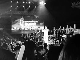 成龍國(guó)際動(dòng)作電影周開幕式現(xiàn)場(chǎng),成龍、周華健與觀眾互動(dòng)。