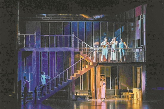 《春園·1923》采用了360度旋轉(zhuǎn)舞臺的設(shè)計。通過豐富的舞臺轉(zhuǎn)場,春園和曾為中共三大會址的兩層小樓凝練地佇立在同一空間,隨著舞臺旋轉(zhuǎn)、時空切換,人物在場景內(nèi)外自如穿梭,推進著故事的發(fā)展。