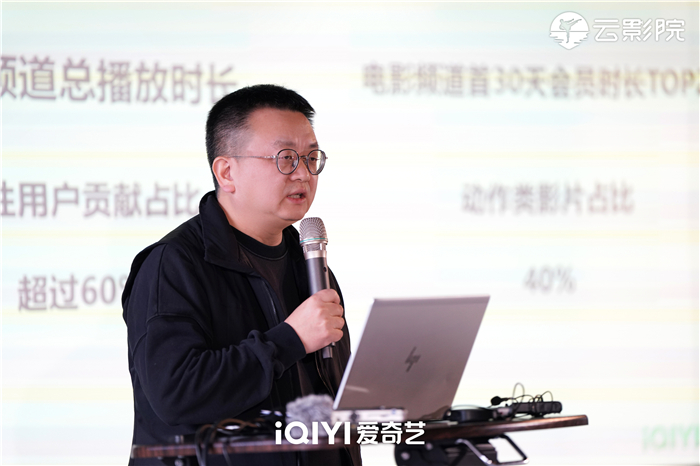 談及推出“動作高手季”電影廠牌,楊海濤表示這是基于實際的平臺用戶消費洞察。從用戶畫像來看,男性用戶為愛奇藝電影業(yè)務(wù)貢獻的播放時長超過60%,屬于電影消費的主流用戶群,且對動作影片具有一定偏好。從會員播放時長排名來看,上線30天影片會員播放時長排名前20的電影中,動作類型影片占比達到40%。從2023年云影院影片用戶付費訂購表現(xiàn)來看,動作類型影片的訂購數(shù)占到所有影片的91%。