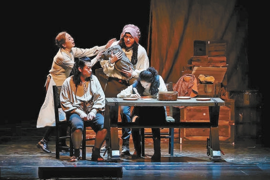 與16世紀“大航海”時代主題相扣,《威廉與我》的舞臺散發(fā)著復古氣息。巧妙多變的裝置設計,融合了古典與當代,既像一座微型劇場,又像一艘航行大船,還像一頂恢宏皇冠,也像一處囚籠刑場。劇中四位優(yōu)秀演員,以幽默詼諧、靈氣詩意、舉重若輕、跳進跳出的表演和身份轉(zhuǎn)換,分別扮演莎士比亞的童年、青年、中年、老年和其他30多個角色,在有限的時空中,用無限的想象力和表現(xiàn)力,將這位傳奇劇作家一生中的重要事件及作品創(chuàng)作情況串聯(lián)起來,演繹出他所處時代的風云變幻及其動蕩漂泊的復雜一生。