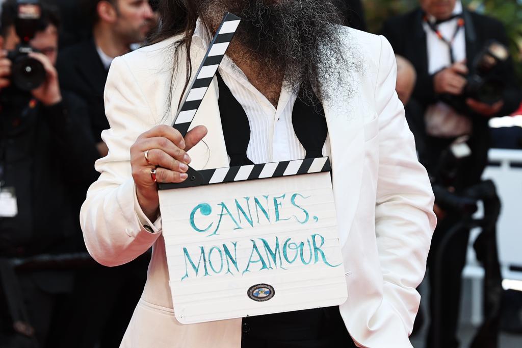 5月25日,在法國南部城市戛納舉行的第77屆戛納電影節(jié)上,一名嘉賓抵達(dá)閉幕式紅毯。新華社記者 高靜 攝