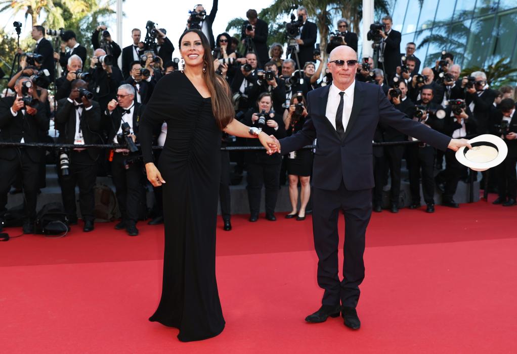 5月25日,在法國南部城市戛納舉行的第77屆戛納電影節(jié)上,演員卡拉·索菲亞·加斯孔(左)和法國導(dǎo)演雅克·奧迪亞爾抵達(dá)閉幕式紅毯。新華社記者 高靜 攝