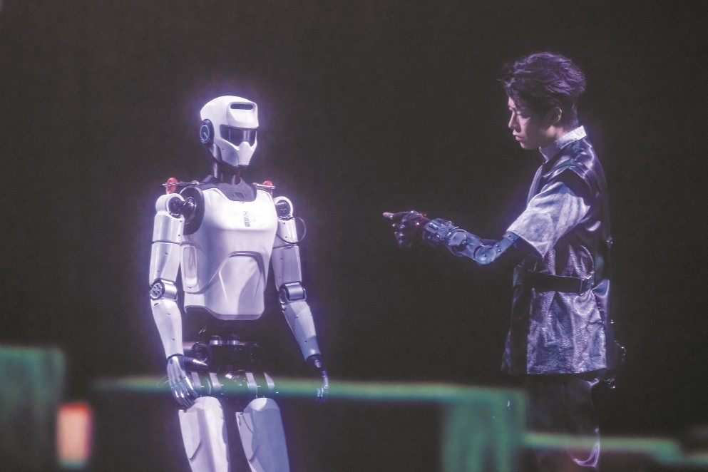 這是發(fā)生在中國大戲院長三角城市戲劇節(jié)中的最“科幻”一幕,國內領先的機器人走出實驗室和展廳,以接地氣、親和的方式來到普通人身邊。面對這樣的場景,人們不再那么陌生——2025春晚上,張藝謀導演的《秧BOT》讓人形機器人略顯滑稽地扭起秧歌;上半年,半程馬拉松也迎來人形機器人“跌跌撞撞”的身影?!拔覀冊谔剿饕环N可能性,試著模擬發(fā)生在未來的場景。”《巨物之城》藝術總監(jiān)、上海戲劇學院藝術科技與管理學院副院長沈倩對記者說,“無論對于機器人還是演藝產業(yè)來說,都具有破圈的意義?!闭\然,機器人仍在亦步亦趨地努力跟上人類的節(jié)奏,但其不斷前進的腳步已經令人激動。面對“人機共生”的時代命題,上海邁出了全國舞臺實踐的第一步。