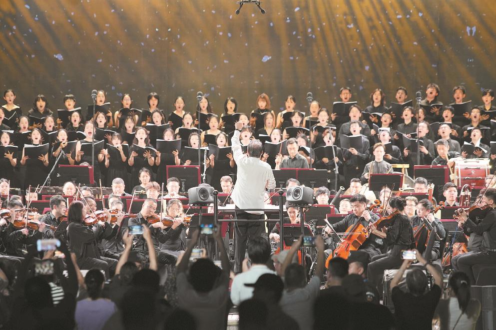 在音樂總監(jiān)余隆執(zhí)棒下,上海交響樂團攜手回聲節(jié)日合唱團為2025上海夏季音樂節(jié)畫上句點。 沈超凱 攝
