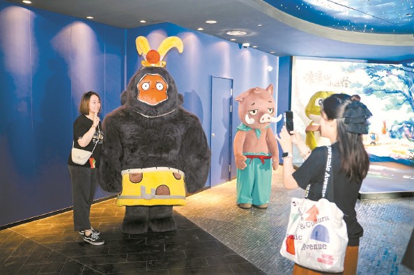 從走出軌交徐家匯站的那一刻起,“浪浪山”主題燈箱便接連映入眼簾,悄然揭開這個(gè)奇幻宇宙的序幕;美羅城商場球幕上的“小豬妖”頭像和“這條路走對了”的標(biāo)語,引人駐足眺望;走進(jìn)“大王洞”觀影,挑選三五周邊玩偶、精美文創(chuàng)產(chǎn)品,在360°環(huán)形劇場聽一場“浪浪山開放麥”,在“豬媽媽茶水站”來一杯飲料……這趟沉浸式體驗(yàn)豐富而圓滿。