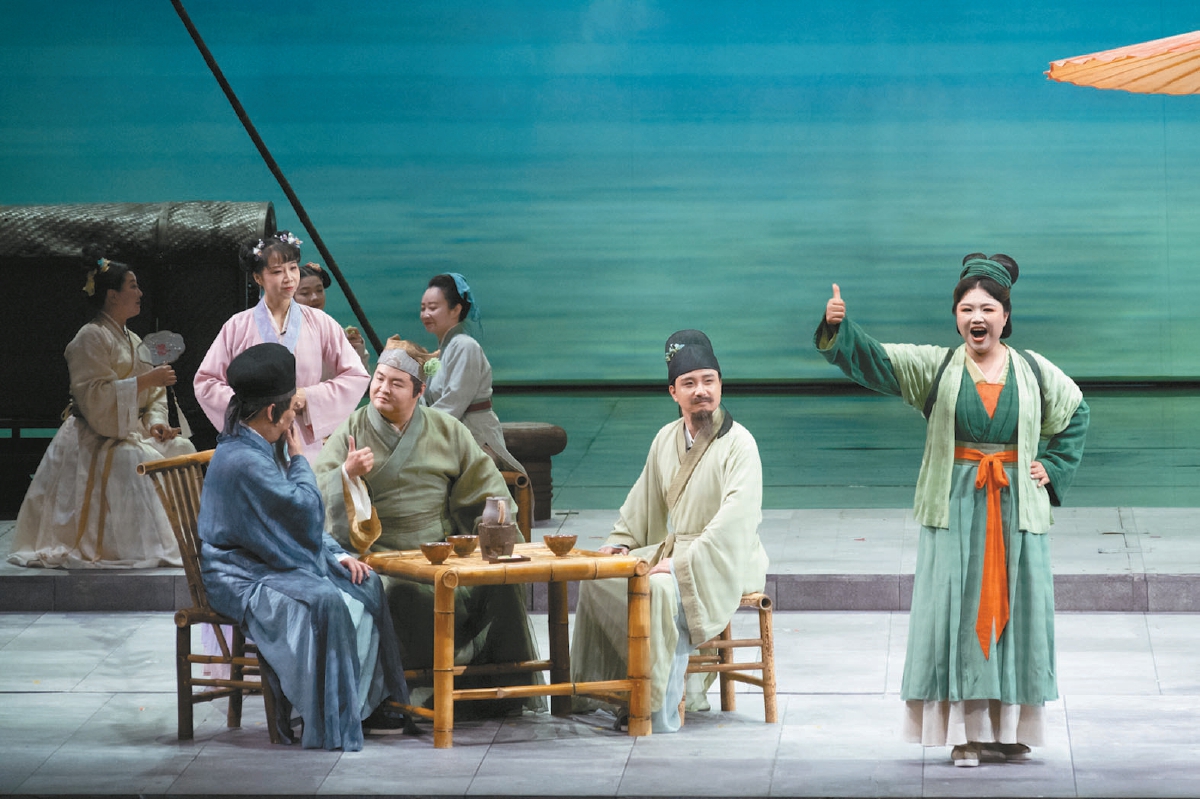 編劇曹路生借用清代李漁“立主腦、減頭緒、密針線”的創(chuàng)作理念大刀闊斧重構(gòu)敘事,刪減十余個(gè)支線人物,將敘事重心聚焦于趙盼兒、宋引章、孫三娘三位女性從錢塘到汴京的創(chuàng)業(yè)歷程。既延續(xù)關(guān)漢卿元雜劇《趙盼兒風(fēng)月救風(fēng)塵》的精神內(nèi)核,又汲取電視劇對女性情誼的現(xiàn)代詮釋,通過歌劇獨(dú)有的抒情性與戲劇張力,展現(xiàn)了中國女性“自尊、自愛、自立、自強(qiáng)”的精神內(nèi)核。導(dǎo)演蔣維國以“宋式美學(xué)的歌劇化重構(gòu)”為核心,巧妙調(diào)度舞臺,演員舉手投足間皆融入宋畫的“日常優(yōu)雅”,將影視IP的動人故事升華為具有普適價(jià)值的歌劇藝術(shù)表達(dá)。