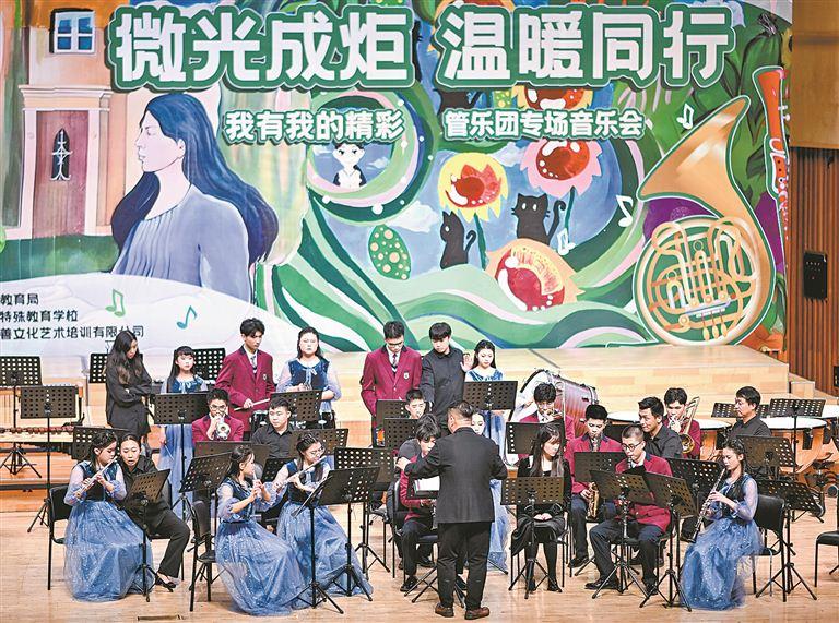 2023年12月27日,市特教學校管樂團專場音樂會在專業(yè)音樂廳——五緣音樂廳舉行,18名學生上場,帶來了十多首國內(nèi)外經(jīng)典曲目。