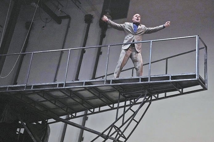 在全劇重中之重的高潮部分,珊塔跳入海中,荷蘭人的大船傾覆在高浪里,令人心驚哀慟。而在有限的舞臺(tái)空間里表現(xiàn)沉船場(chǎng)景,需要一些巧思,“船上的液壓裝置會(huì)讓船頭先翹起來(lái),展現(xiàn)船艙進(jìn)水后真實(shí)的物理效果,之后再用整個(gè)主舞臺(tái)載著船頭下降,雙重疊加,在視覺(jué)上加大船體的錯(cuò)位感?!崩罡鶎?shí)說(shuō)。宏偉的舞臺(tái)制作承托起瓦格納波瀾迭起的音樂(lè)、故事中犧牲與救贖的哲學(xué)命題,讓這一版《漂泊的荷蘭人》成為當(dāng)之無(wú)愧的“大戲”。