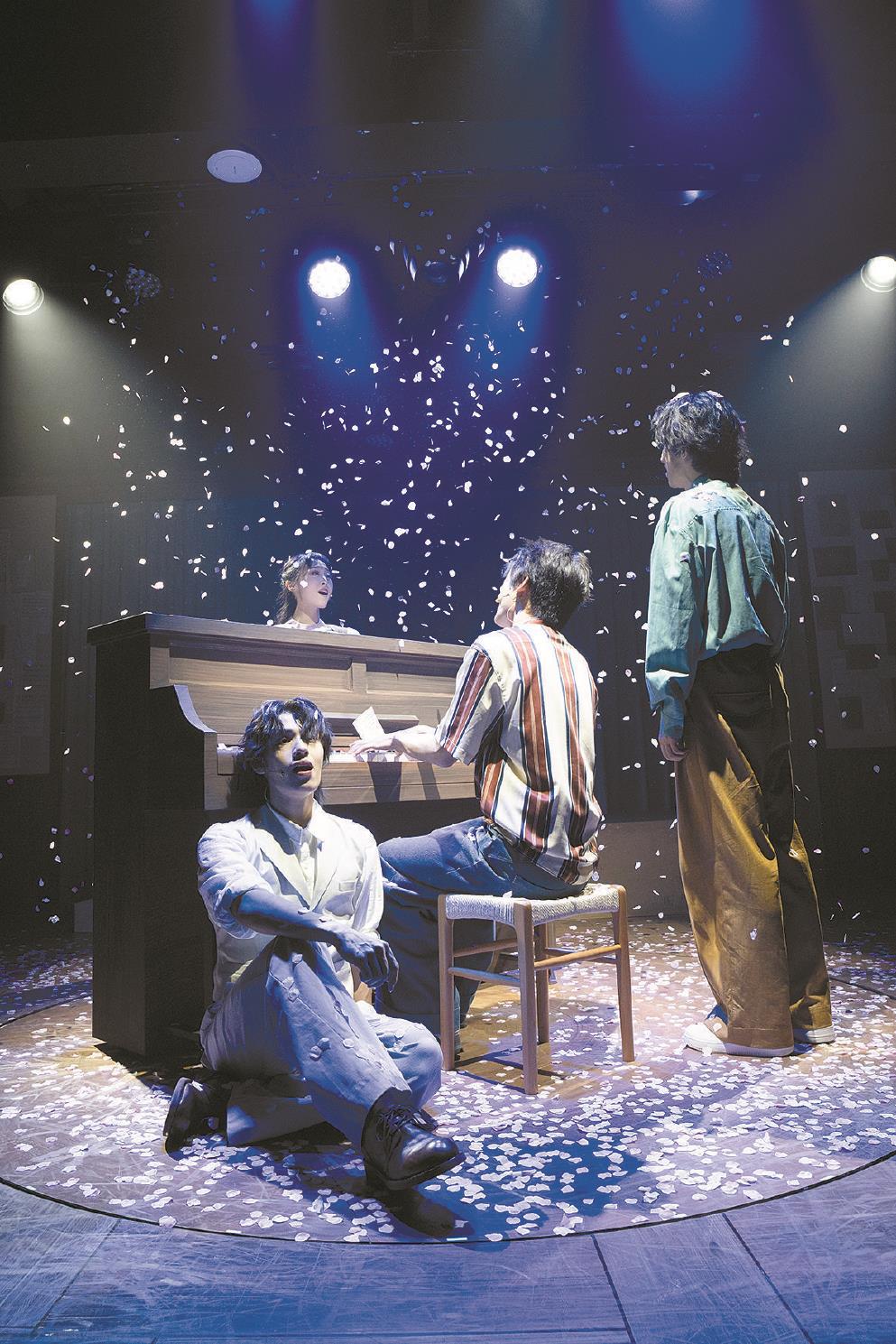 他們是用什么連接起那看似“前世有緣”的兩個(gè)故事的呢?主要不是“緣分”或“天命”,而是兩個(gè)藝術(shù)家的創(chuàng)作——就像制作該劇的“劇伙”主創(chuàng)團(tuán)隊(duì)自己所做的一樣。這個(gè)團(tuán)隊(duì)包括導(dǎo)演編舞劉曉邑,編劇作詞黃菀卿、陶倩妮、薛敏,作曲編曲徐肖、姚旭之,制作人和曉維,出品人張博禹。就像一面他們自己的鏡子,這是一部展示音樂劇創(chuàng)作過程的“元戲劇”(Meta-theatre)。