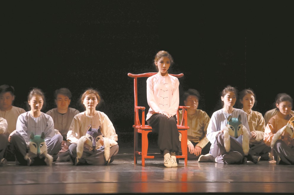 話(huà)劇《主角》中,青年演員劉李優(yōu)優(yōu)(左二)飾演秦腔名家憶秦娥。 (主辦方供圖)