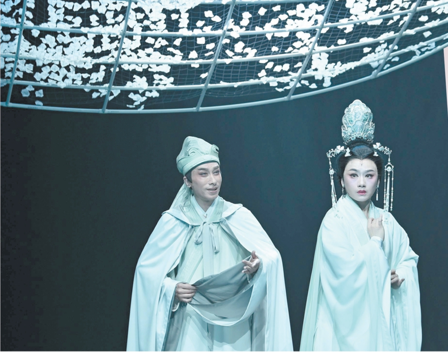 舞臺上,《帝女花》長演不衰,多個劇團(tuán)進(jìn)行了重塑排演,其中不乏創(chuàng)新求變的探索。桃花源粵劇工作舍于2022年制作了《帝女花》65周年巡演版,并細(xì)分為管弦光影版、學(xué)生戲臺版等多個不同版本,激發(fā)觀眾的思考與想象。2024年,廣東粵劇院推出曾小敏、文汝清主演的小劇場粵劇《帝女花·一念》,在保留經(jīng)典唱段的基礎(chǔ)上做簡化,嘗試注入新的時代氣息。劇中,曾小敏不僅飾演了戴花冠、著宮裝的長平公主,還扮演了穿越古今的素衣女子,引領(lǐng)觀眾穿越古今,體驗(yàn)長平公主的前世今生。