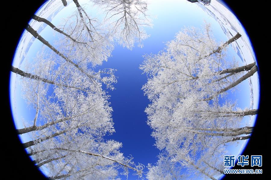 1月3日在新疆阿勒泰地區(qū)富蘊(yùn)縣吐爾洪鄉(xiāng)拍攝的霧凇美景。藍(lán)天映襯下的冰雪世界顯得一片肅穆。 新華社發(fā)(丁寧 攝)