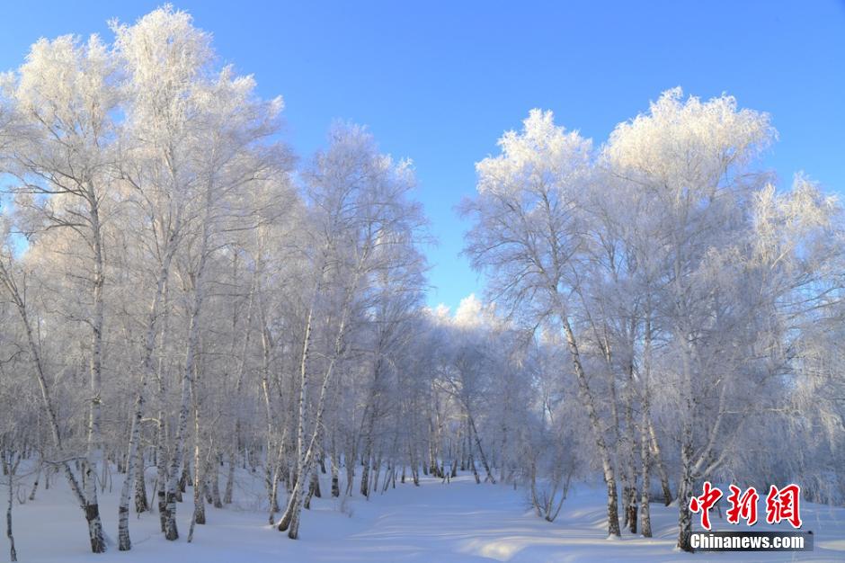 新疆阿勒泰罕見(jiàn)降雪后 現(xiàn)千里霜掛美景