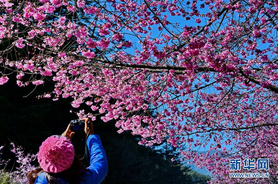 2月29日,游客在武陵農場賞花。初春的臺灣,氣溫回升,位于海拔1700多米的臺中武陵農場,漫山遍野的櫻花競相開放,美不勝收,吸引了四面八方的游客前來觀賞。 新華社記者張國俊 攝