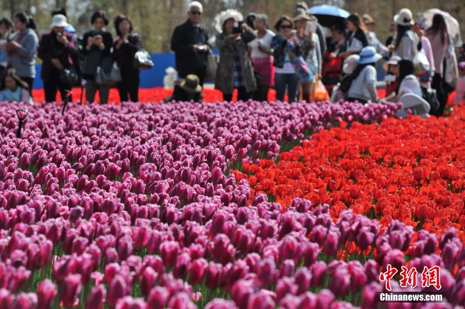 3月9日,昆明撈魚河濕地公園22畝約60萬株郁金香盛開,吸引了大量的游客和市民排隊(duì)前來賞花、拍照。據(jù)了解,撈魚河濕地公園種植的郁金香均是從荷蘭進(jìn)口的,花期為25天。自向民眾開放以來,每天平均有兩萬人進(jìn)園賞花。中新社記者 任東 攝