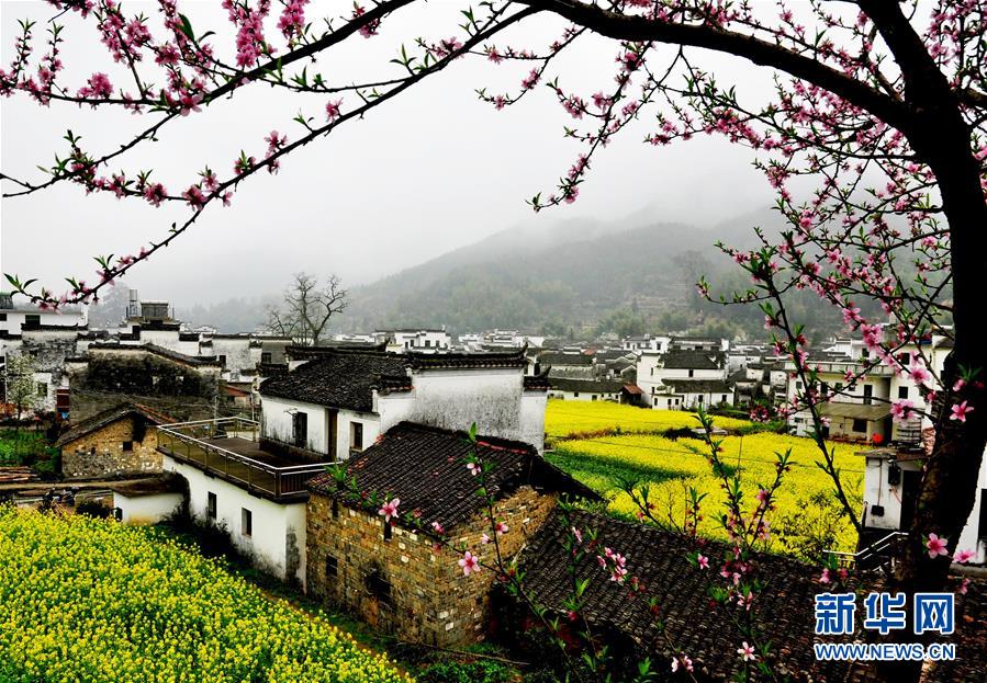 3月22日拍攝的江西省婺源縣段莘鄉(xiāng)慶源村春景。春回大地,江西省婺源縣鄉(xiāng)間油菜花、桃花、梨花競(jìng)相開(kāi)放,與粉墻黛瓦的徽派民居相映成趣,構(gòu)成一幅幅美麗的春色畫卷。 新華社發(fā)(胡敦煌 攝)