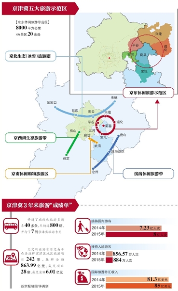 按照這一宣言,除京東旅游休閑示范區(qū)外,密云、延慶、承德、張家口共建京北生態(tài)(冰雪)旅游圈,其中延慶、張家口共建京張?bào)w育文化旅游帶。房山、保定將共建京西南生態(tài)旅游帶,其中包含京西百渡休閑度假區(qū)。武清、廊坊將共建京南休閑購(gòu)物旅游區(qū),濱海新區(qū)、唐山、滄州將共建濱海休閑旅游帶。