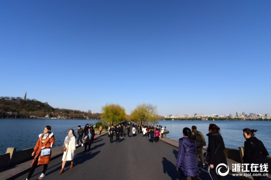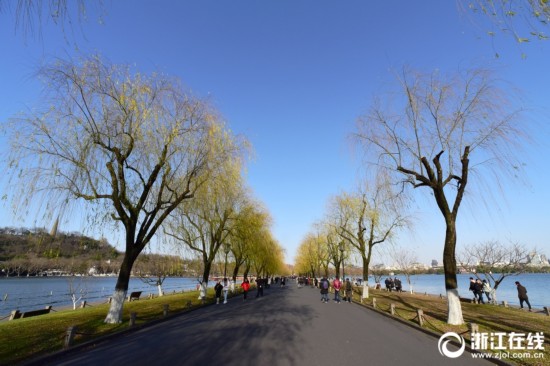 1月9日,寒潮伴隨著“三九”抵杭。西湖邊,雖冷,但久違的“西湖藍(lán)”,卻足以刷爆“朋友圈”。(浙江在線 拍友 里爾 攝)