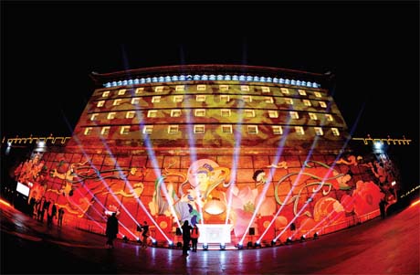 西安城墻新春燈會(huì)上被裝飾一新的箭樓(2月8日攝)。2月8日晚,2018年西安城墻新春燈會(huì)在陜西西安明城墻開幕?!棒~化龍”“鳥語花香”“夢與飛翔”等萬盞彩燈把古都裝點(diǎn)得金碧輝煌。