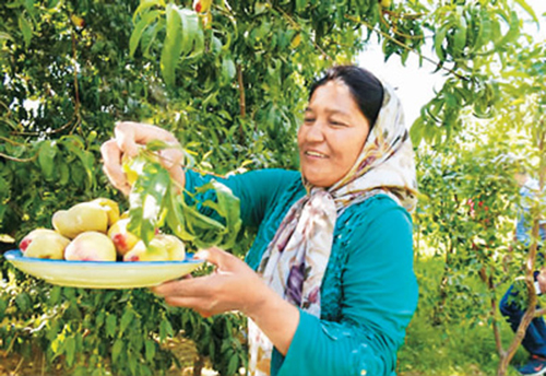 維吾爾族農(nóng)民古麗扎汗在果園收獲早熟鮮桃 (新華社記者 沈 橋攝)
