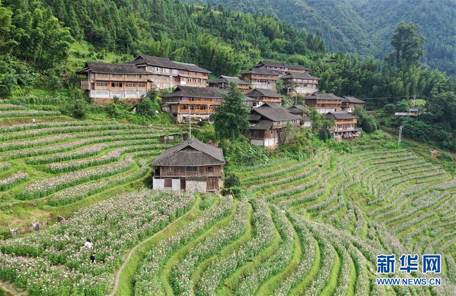 7月6日拍攝的龍勝各族自治縣泗水鄉(xiāng)周家村布尼梯田(無(wú)人機(jī)照片)。 近日,廣西龍勝各族自治縣泗水鄉(xiāng)周家村布尼梯田種植的近千畝鮮花競(jìng)相開(kāi)放,美不勝收。 新華社記者 陸波岸 攝