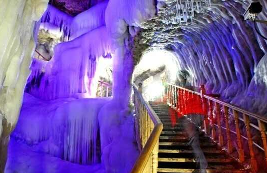 即使酷熱難當(dāng)?shù)氖⑾臅r(shí)節(jié)進(jìn)入洞中,依然是一派冰雕玉砌的嚴(yán)冬景象,和洞外的炎炎烈日、綠樹(shù)紅花構(gòu)成了兩個(gè)截然不同的世界。